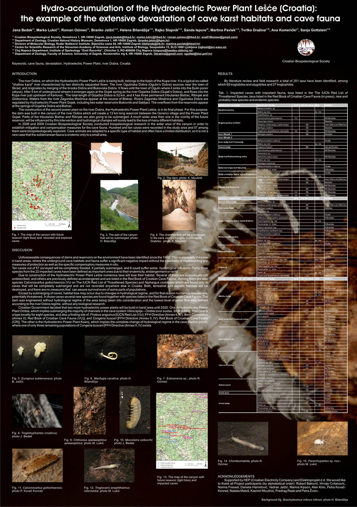 - J. Bedek, M. Lukić, R. Ozimec, B. Jalžić, H. Bilandžija, R. Slapnik, S. Iepure, M. Pavlek, T. Dražina, A. Komerički, S. Gottstein: Hydro-accumulation of the hydroelectric power plant Lešće (Croatia): The example of the extensive devastation of cave karst habitats and cave fauna.