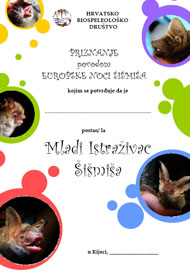 The aim of this manifestation is to remove prejudice and fear of bats and educate the public about the useful role and importance of protecting these endangered mammals. For all visitors CBSS organizes interesting lecture on bats; batwalks, where the visitors have an opportunity to listen to bat echolocation with bat detectors; visitors can learn more about the diet of bats, but also about caving and for the children there are different games and workshops prepared and each child gets awarded with a special recognition for participation. This interesting event attracts more and more visitors each year and is slowly becoming one of the most important nature protection events in Croatia.