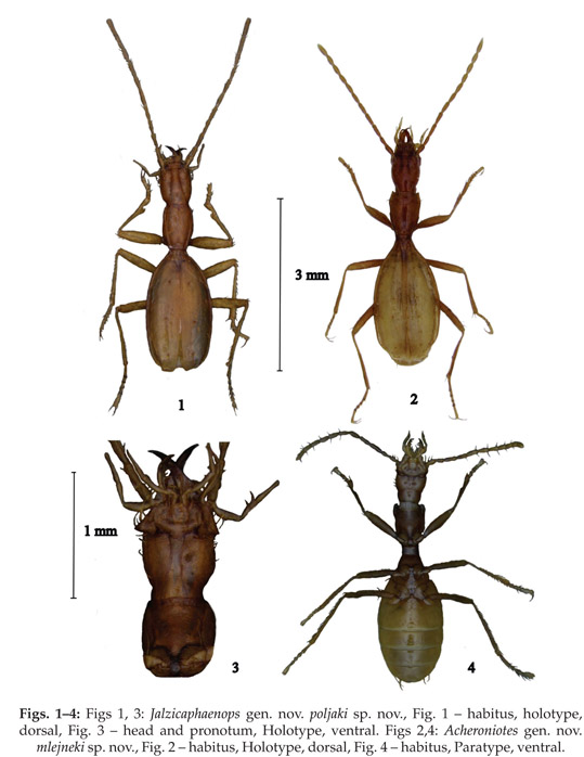 Two original scientific papers are published in journal Natura Croatica Vol 19. No. 1. 2010 with the description of one new genus and three new species of cave beetles (Coleoptera). Two species are described from genus Machaerites, from caves Donja Baraćeva špilja Rakovica, Nova Kršlja (Machaerites pavleki) and cave Špilja pod Zimzelom, Potok Musulinski, Gorski Kotar (Machaerites marjanci). New genus and species is described from cave Dumenčića špilja, Slunj, Rakovica (Jalzicaphaenops poljaki). Maps of caves are also presented in papers. New species are collected during biospeleological exploration conducted by Croatian Biospeleological Society and Croatian Natural History Museum. New species are known so far only from their type localites and represent new endemics of Croatian caves.