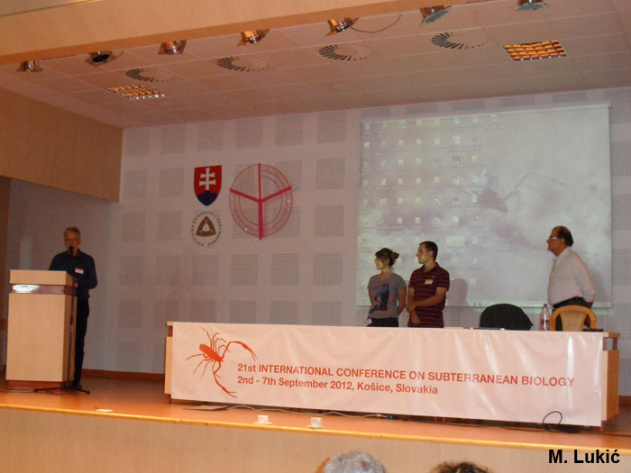 21st International Conference on Subterranean Biology was held from 2nd - 07th September in Košice, Slovakia. It was organized by Institute of Biology and Ecology, Faculty of Science, Pavol Jozef Šafárik University in Košice i State Nature Conservancy, Slovak Caves Administration, Liptovský Mikuláš. 114 scientists from 23 countries participated on the conference with 70 lectures, 67 poster presentations and two short documentaries. Conference program was organized in several symposia: 1. Subterranean Biodiversity and Biogeography, 2. Adaptation, Development, Physiology and Behaviour, 3. Phylogeography and Phylogeny and Evolution 4. Microbiology, Geomicrobiology and Sedimentology, 5. Population and Community Ecology of Subterranean Organisms, 6. Subterranean Ecosystems, 7. Conservation of Subterranean Life. Numerous members of Croatian Biospeleological Society participated in the Conference and two of them received special recognitions: Dajana Hmura for best student poster presentation and Alexander M. Weigand for best student oral presentation.