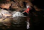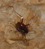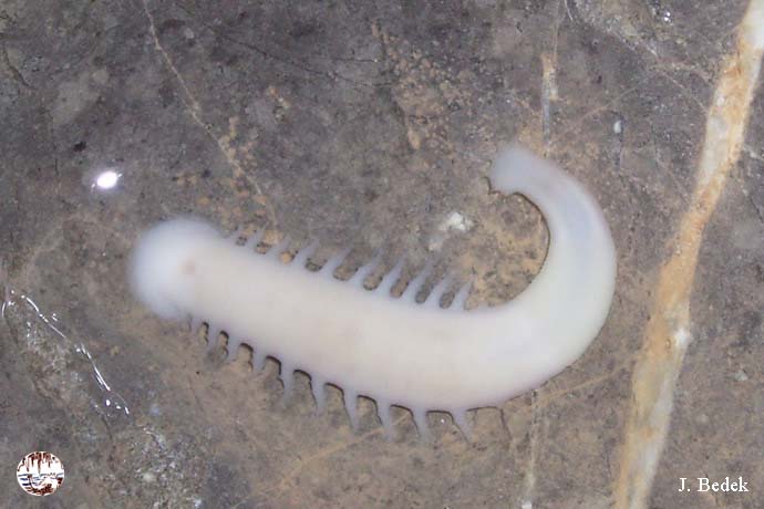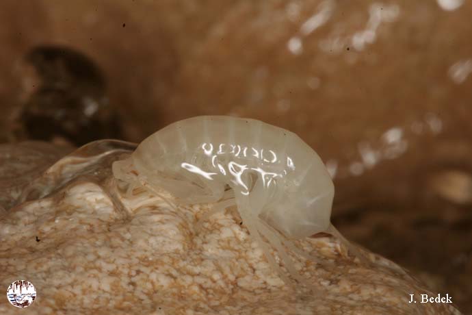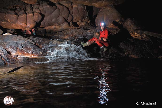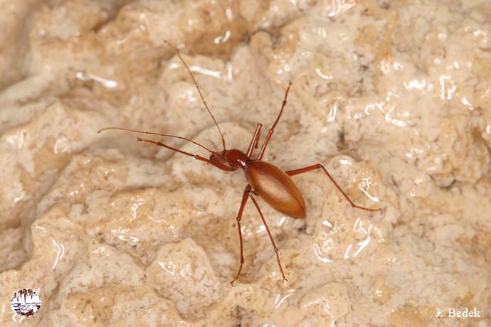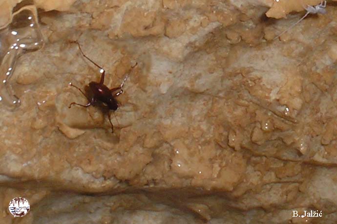 Somewhere in between terrestrial and aquatic habitat there is a special habitat of cave hygropetric. Cave hygropetric is a place on cave walls where thin layer of water permanently flows. In such habitat special cave coleopterans like those from genuses Radziella, Croatodirus and Hadesia can be found. Interesting cave leech Croatobranchus mestrovi , which is on the logo of the Croatian Biospeleological Society is also inhabitant of cave hygropetric. Coleopterans have developed some special mouth structures that helps them to filtrate small organic matters from the water. Cave hygropetric is usually far away from the cave entrances and very often very deep in pits, consequently it is very poorly explored and it is probably inhabited by new and undiscovered species.