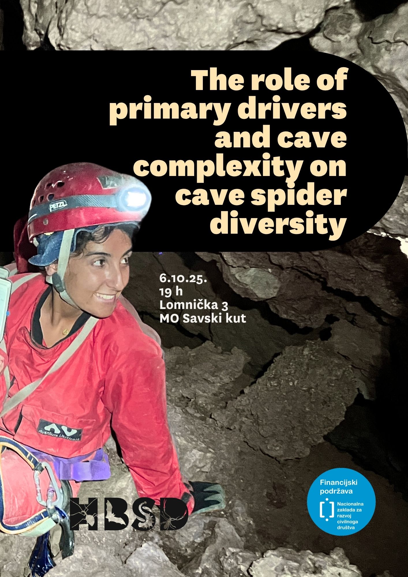 Predavanje pod nazivom “The role of primary drivers and cave complexity on cave spider diversity” održati će Catarina Teixeira, studentica biologije sa sveučilišta u Lisabonu, Portugal.